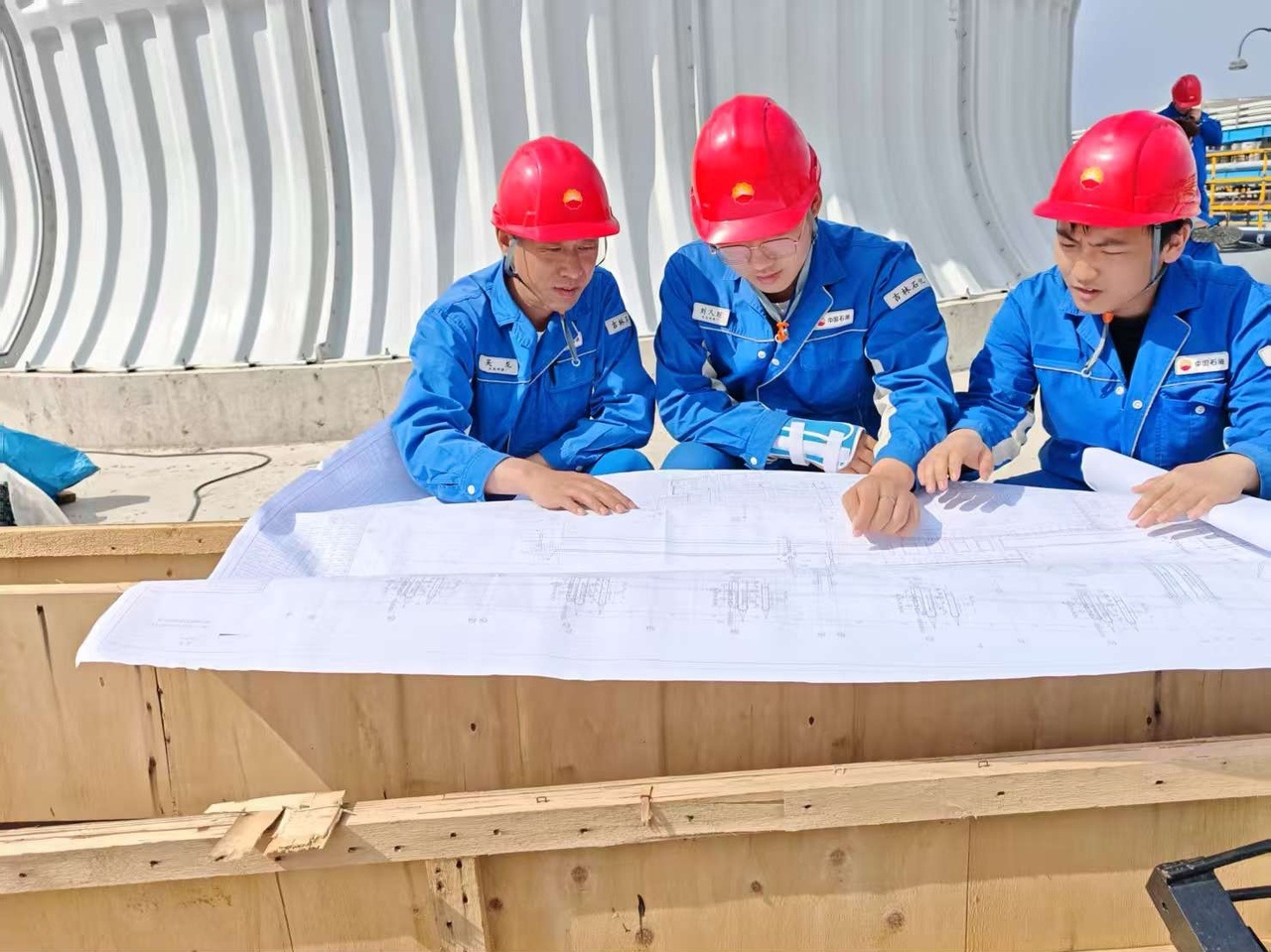 “改进清单”在质量把控的战场上“掷地有声”。凉水塔内部填料安装,是关乎设备冷却效能和寿命的“心脏工程”。从填料规格核验到安装校准,吴龙紧盯每一个环节。面对部分人员因赶工期产生懈怠的现象,他语重心长:“多一分细心,设备就多十分效能。”在防腐喷涂环节,他凭借丰富经验,精准判断出墙面喷涂厚度未达标准。“防腐是设备长周期运行的‘防护甲’,容不得半点马虎,必须返工!”立足他的“改进清单”,最终,防腐工作以远超标准的质量顺利收官。